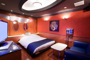 Concept is to create a gorgeous space at a reasonable price. We have 9 chic guest rooms decorated with marble and beds with canopies that are popular among women. All rooms are equipped with jet baths, bathroom TVs, Steam saunas, and free VOD theater systems. In addition, on-site parking is available free of charge and at a reasonable price.